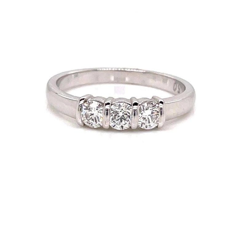 18ct White Gold Three Stone Diamond Bar Set Ring 0.50ct