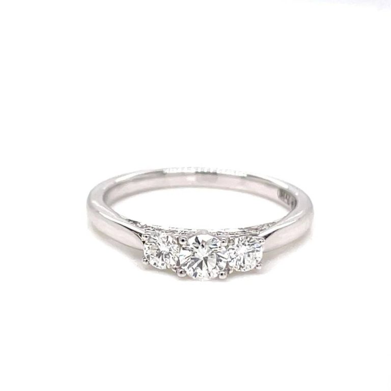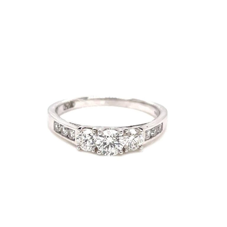 18ct White Gold Three Stone Round Brilliant Cut Diamond Ring