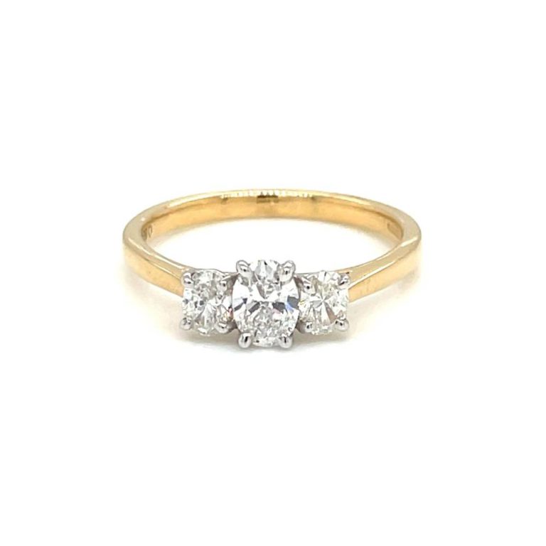 18ct Yellow Gold 0.63ct Three Stone Oval Diamond Ring