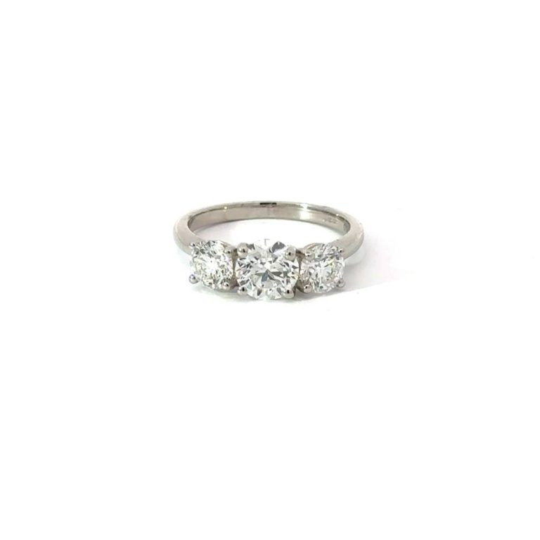 Platinnum Three Stone Round Brilliant Cut Diamond Ring 1.39ct