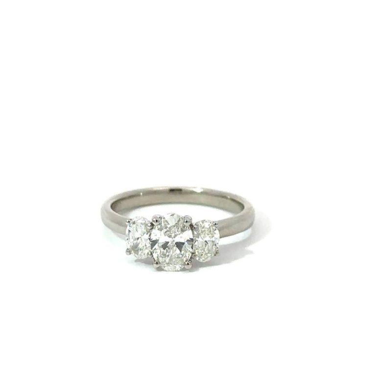 Platinum 1.36ct Three Stone Oval Diamond Ring