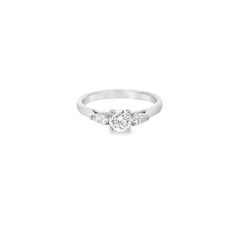 Platinum 0.76ct Round & Pear Diamond Three Stone Ring