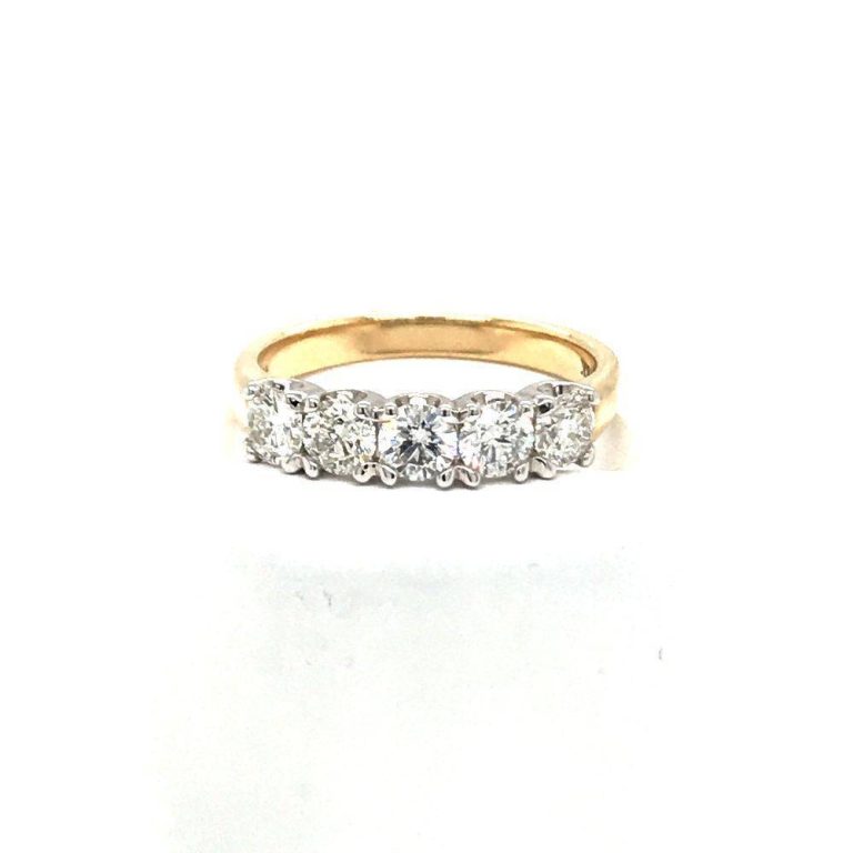 18ct Yellow Gold Five Stone Diamond Claw Set Ring 1ct