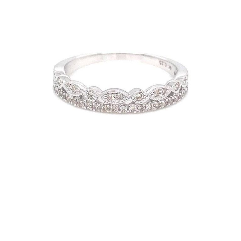 9ct White Gold Scalloped Diamond Half Eternity Ring