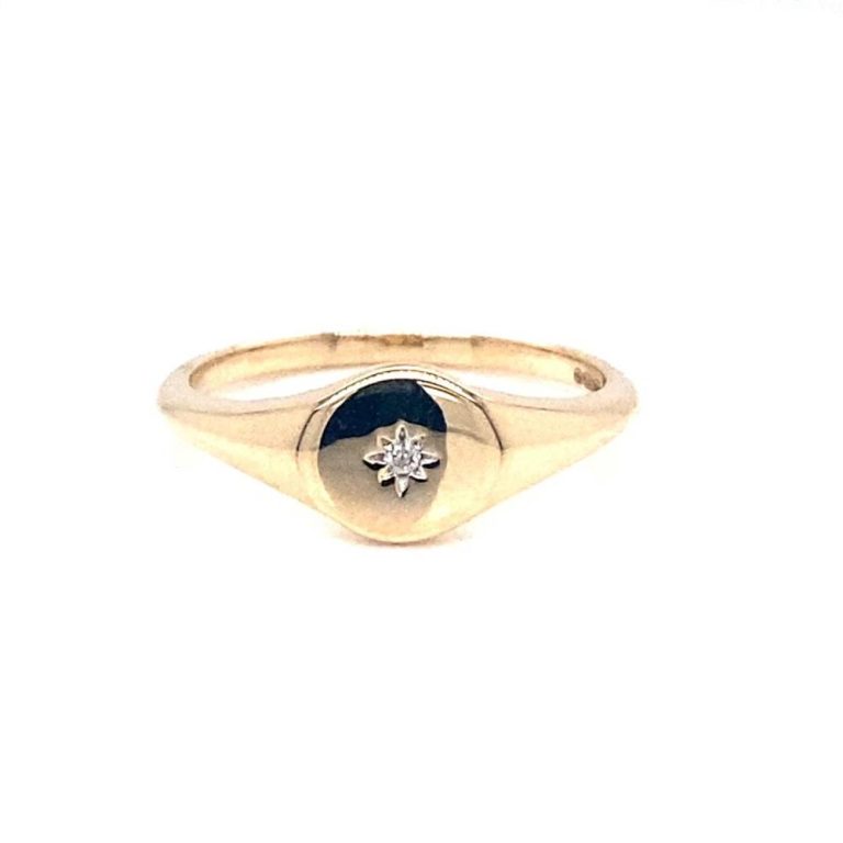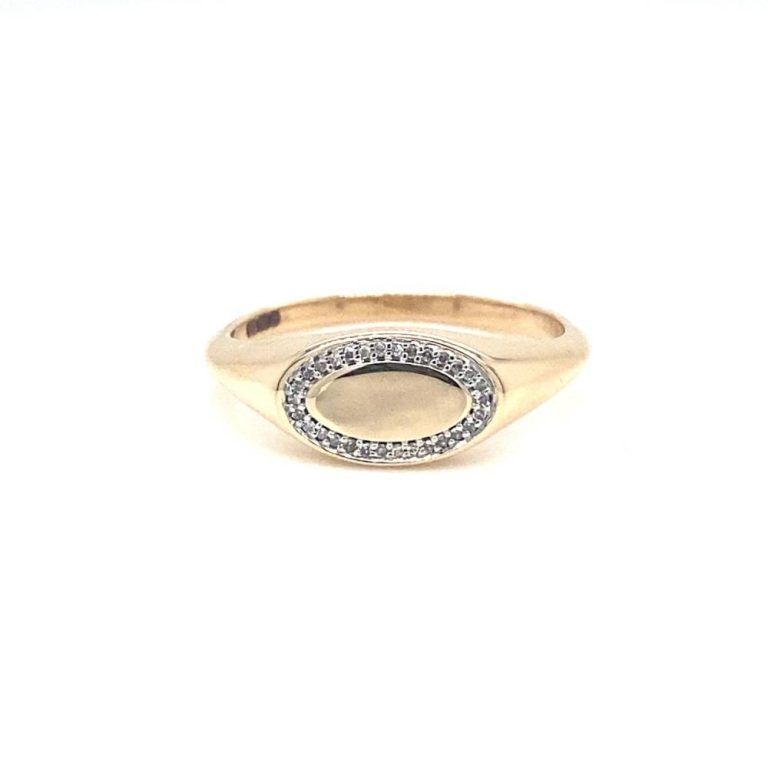9ct Yellow Gold Oval Diamond Set Signet Ring