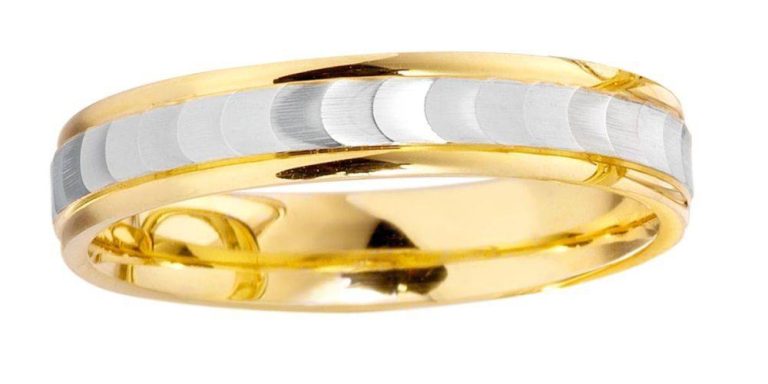 9ct Yellow & White Gold Line Centre Wedding Ring