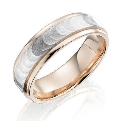 Palladium & Rose Gold Gents Patterned Wedding Ring