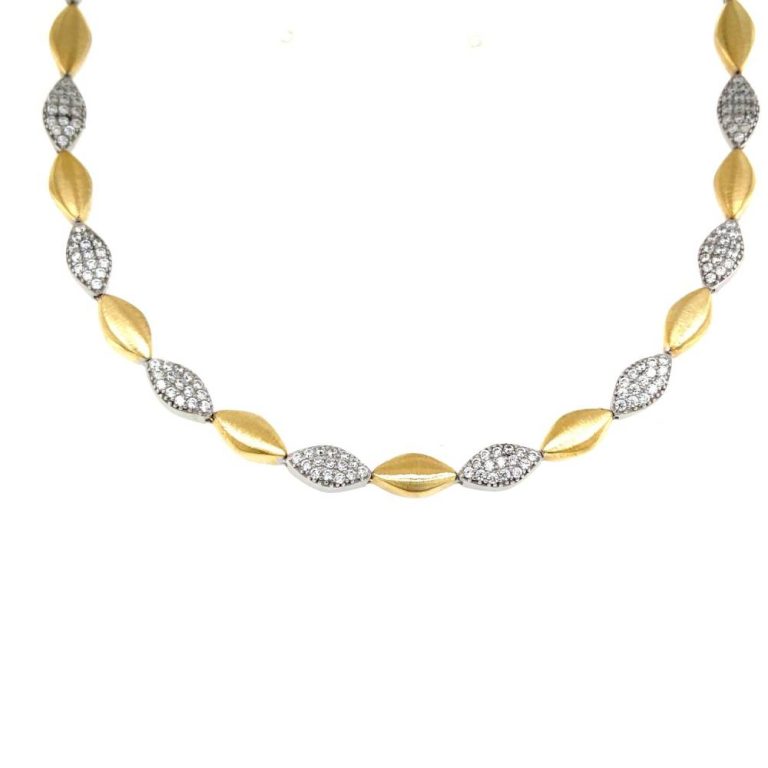Gold Plated Marquise Link Cubic Zirconia Necklace