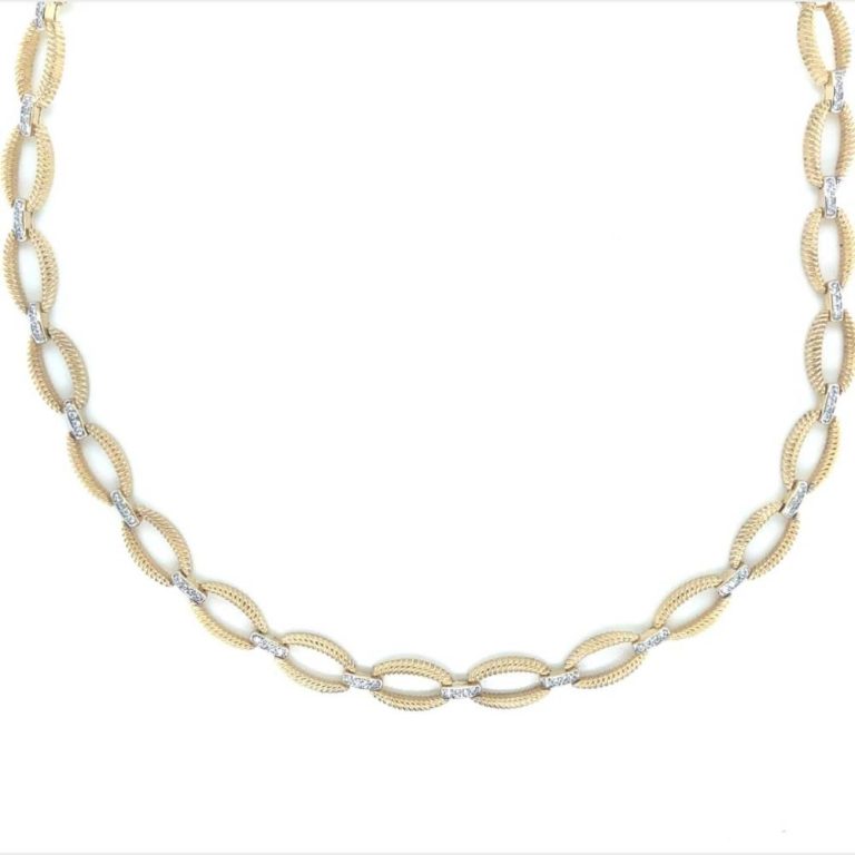 Gold Plated Oval Link & Cubic Zirconia Necklace