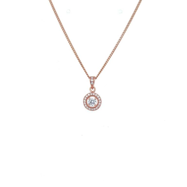 Rose Gold Plated Cubic Zirconia Halo Pendant