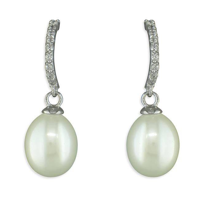 Sterling Silver Cubic Zirconia Freshwater Pearl Drop Earrings