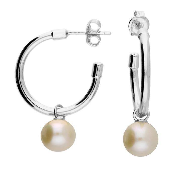 Sterling Silver Freshater Pearl Hoop Earrings