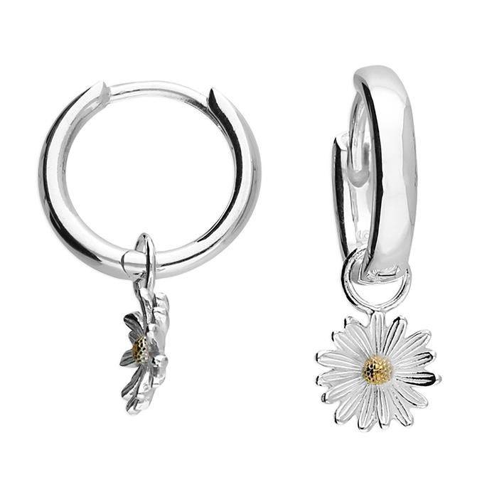 Sterling Silver Daisy Huggie Earrings