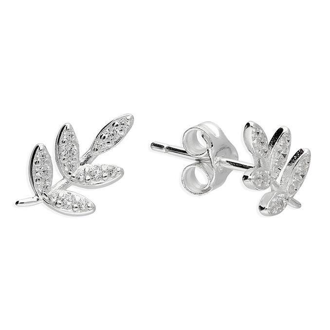 Sterling Silver Cubic Zirconia Leaf Stud Earrings