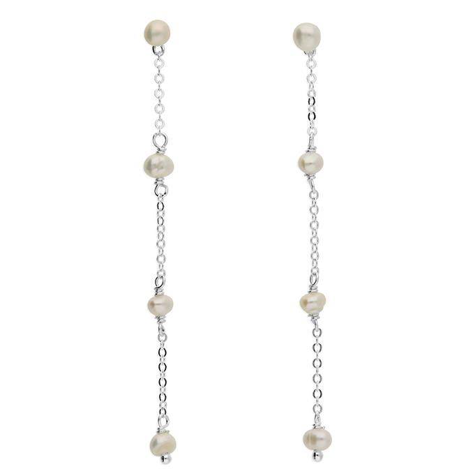 Sterling Silver Freshwater Pearl Chain Drop Earrings