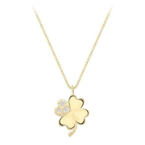 9ct Yellow Gold Four Leaf Clover Pendant & Chain