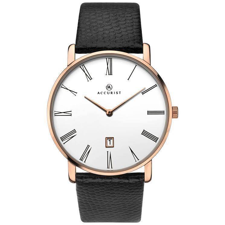 Accurist Gents Rose Gold Plated Leather Strap Watch