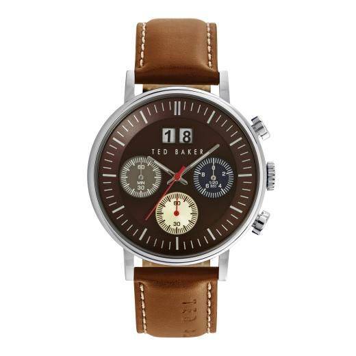 Ted Baker Gents Stainless Steel Brown Leather Strap Watch
