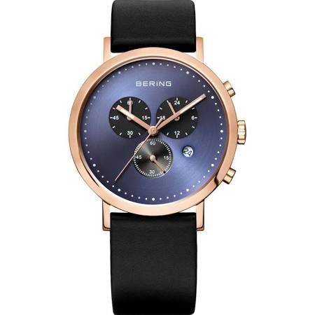 Bering Gents Rose Gold Plated Blue Dial Watch