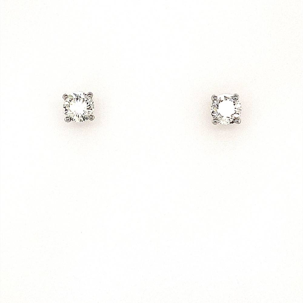 A pair of single round brilliant cut diamond four claw set 18ct white gold stud earrings. 1.20ct total diamond weight. Approximately H/I colour, Si clarity.