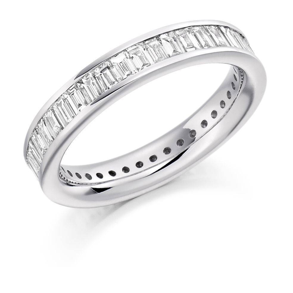 18ct white gold baguette cut diamond full eternity ring in a channel setting. Total diamond weight 1.57ct