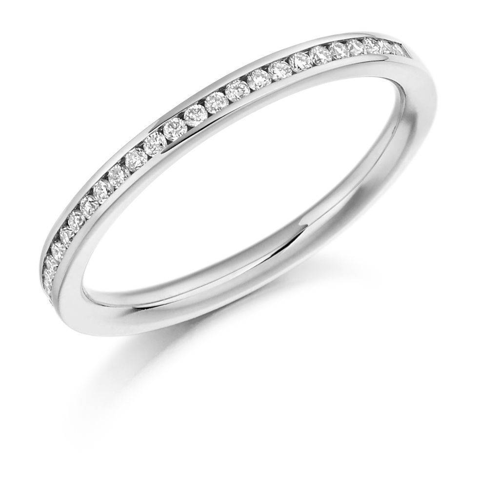 18ct white gold round brilliant cut diamond channel set ring. This ring has 65% diamond coverage and a total carat weight of 0.20ct. This ring is also avaliable in other metals.
