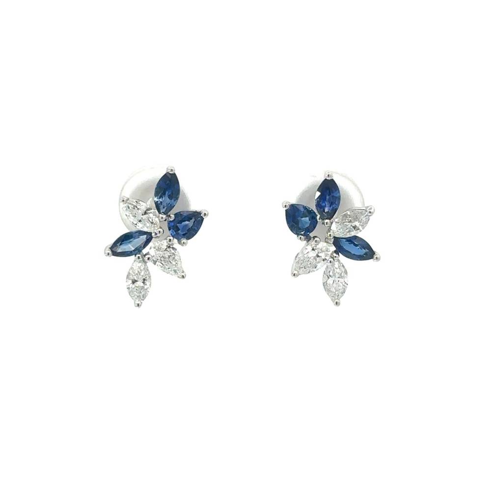 18ct White Gold Fancy Shaped Sapphire & Diamond Stud Earrings