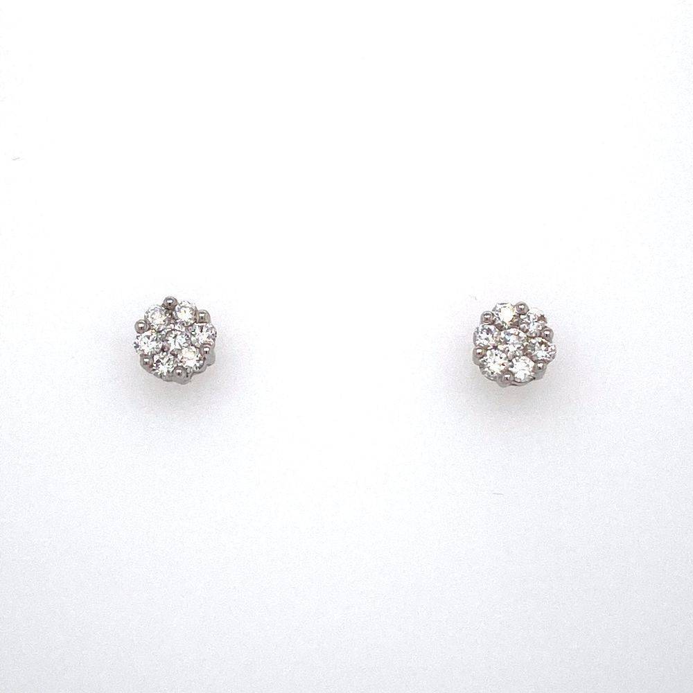 18ct white gold seven stone round brillant cut diamond round stud earrings. These earrings are invisible set, so from a distance it gives the illusion of just one stone rather than multiple diamonds. 0.51ct total diamond weight.