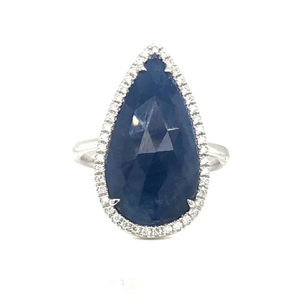 18ct White Gold Rose Cut Sapphire & Diamond Pear Shaped Ring