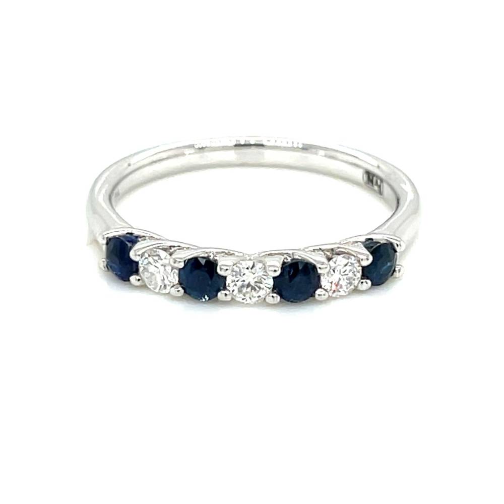 18ct white gold alternate sapphire and diamond half eternity style ring set in a low claw setting. 0.50ct total sapphire & diamond weight. This ring is available in all othe rprecious metals.