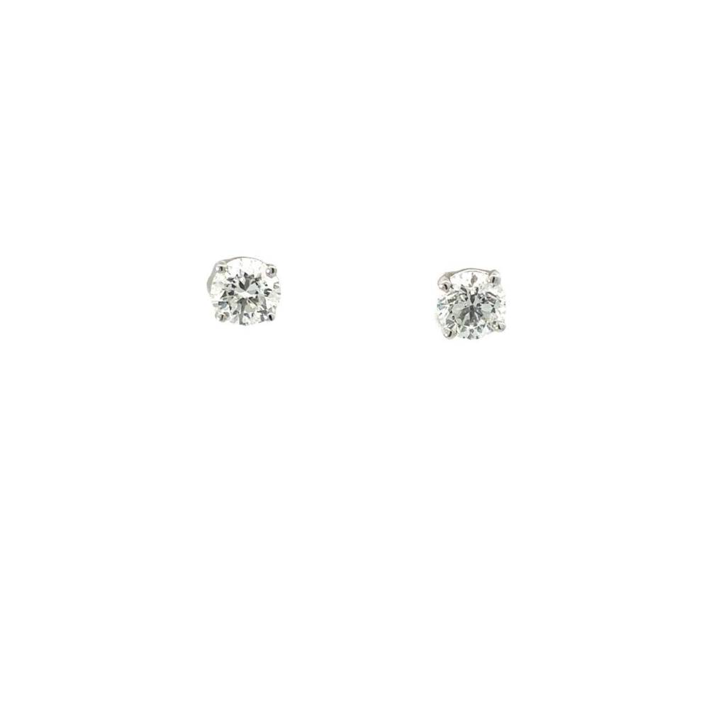 Single stone round brilliant cut diamond stud earrings four claw set in 18ct white gold ring mounts. 1.00ct total diamond weight, G/H colour, Si clarity.