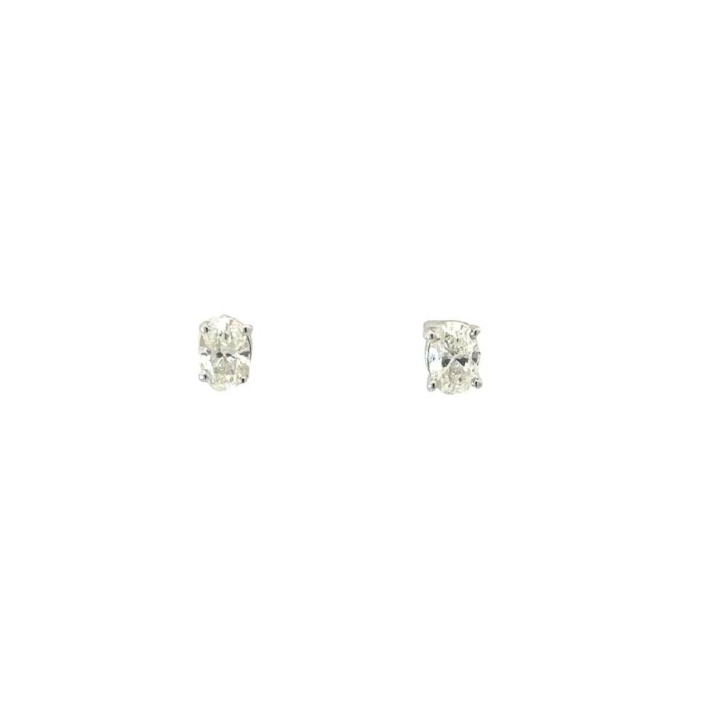 18ct white gold single stone oval diamond stud earrings each set in a four claw setting. 0.80ct total diamond weight. Approximately F/G colour, Si clarity.