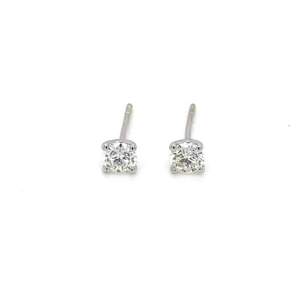 18ct white gold single stone round brilliant cut diamond stud earrings in a low four claw setting. 0.70ct total diamond weight. Approximately G/H colour. Si clarity.