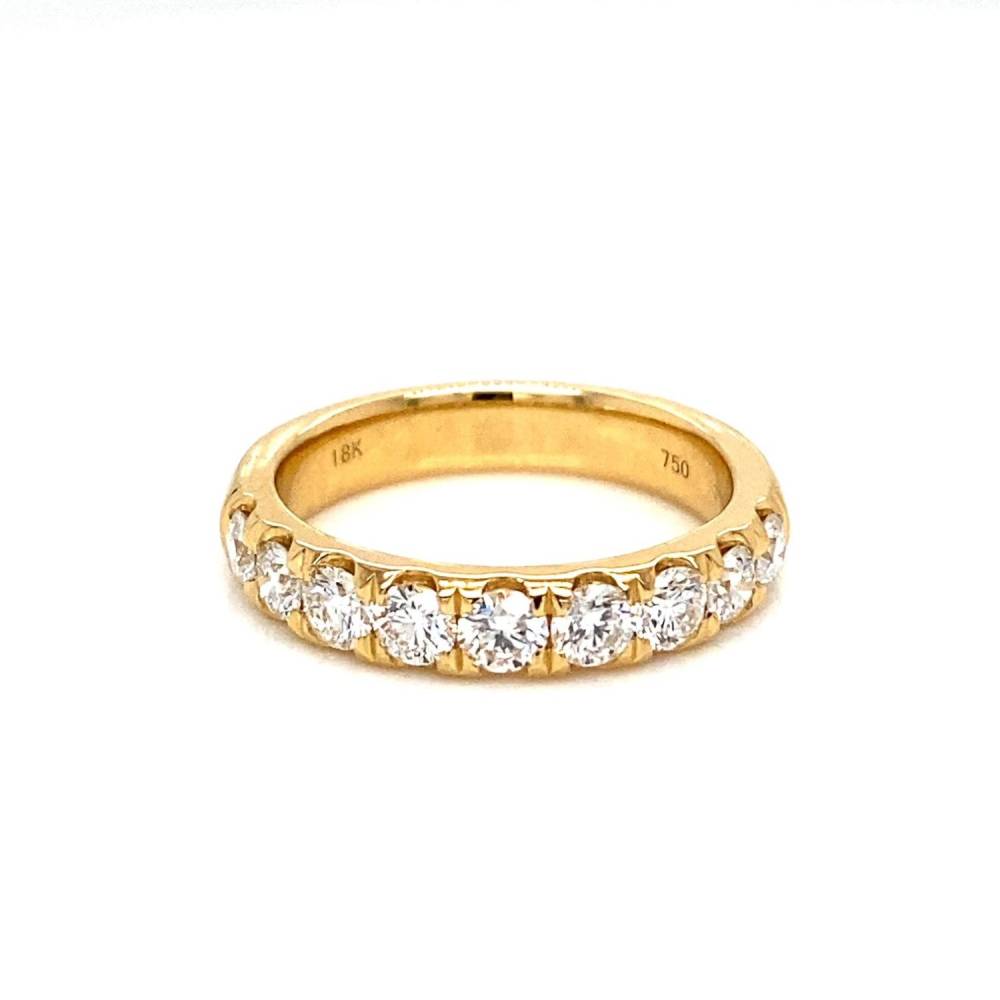 18ct yellow gold round brilliant cut diamond french set half eternity style ring. 1.00ct total diamond weight.