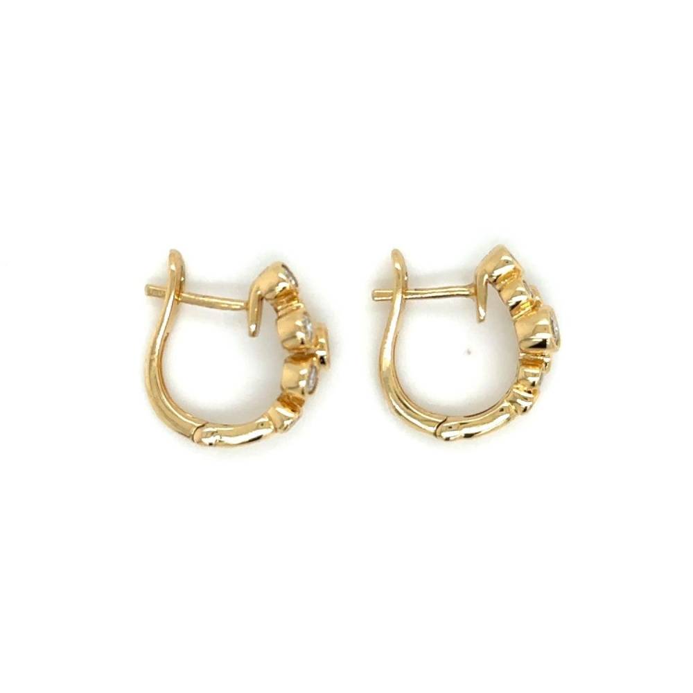 18ct yellow gold seven stone round brilliant cut diamond bubble cluster huggie style hoop earrings. Hinged fittings set with 0.67ct of diamonds.
