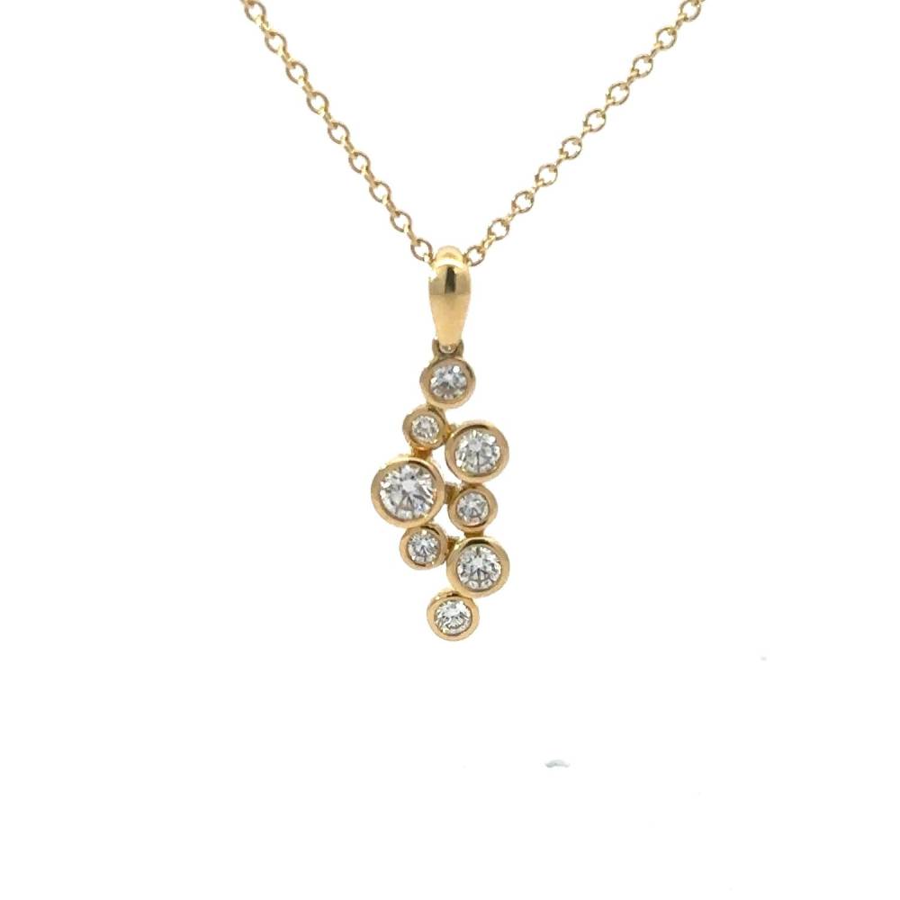 Bubble diamond pendant set with eight round brilliant cut diamonds each rub over set in 18ct yellow gold. This pendant comes on a 18ct gold chain. 0.52ct total diamond weight. Matching hoop earrings available.