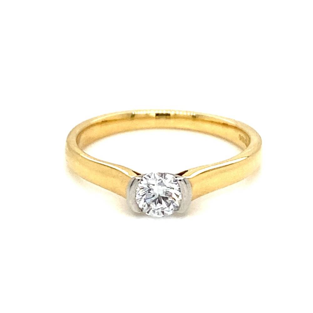 18ct Yellow Gold & Platinum Single Stone Diamond Half Rub Over Set Ring