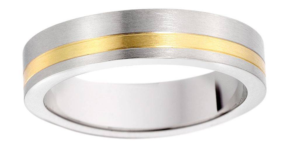 18ct yellow and white gold gents wedding ring in a matt finish.