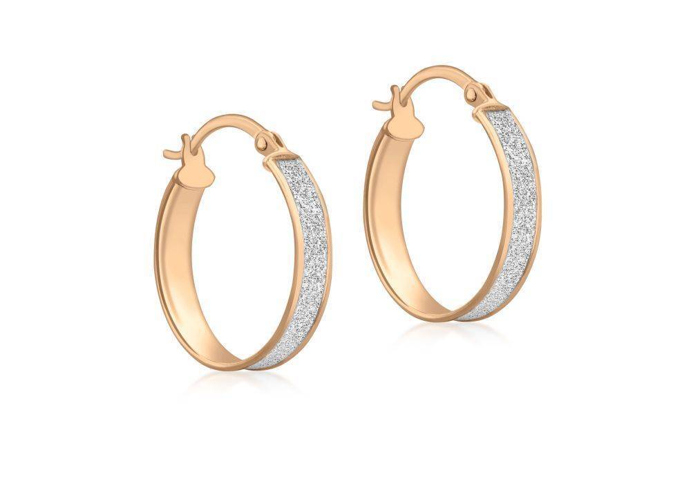 9ct rose gold hoop earrings with a stardust sparkle centre. Diameter 20mm.