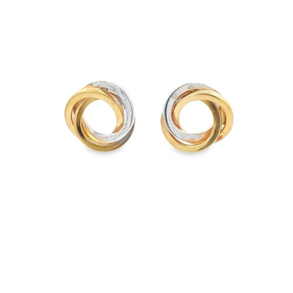 9ct yellow, white and rose gold interlocking circles stud earrings. Size 14mm