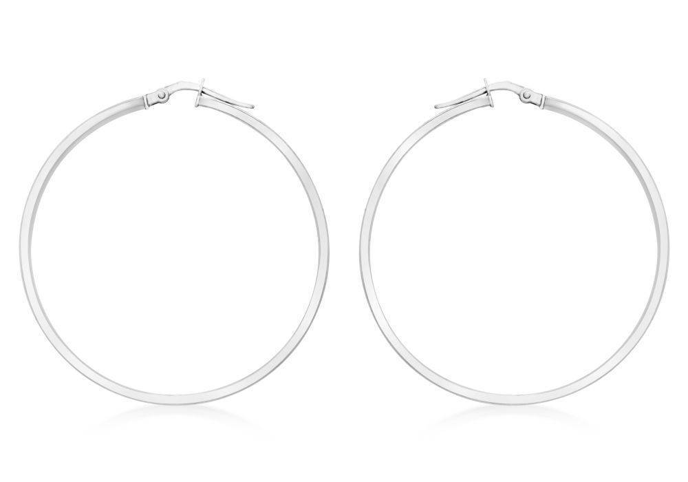 9ct white gold plain slim 35mm hoop earrings.