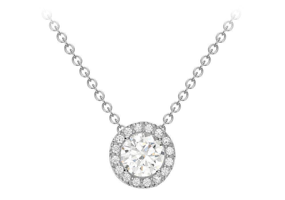 9ct white gold cubic zirconia halo pendant on a 46cm white gold trace chain.