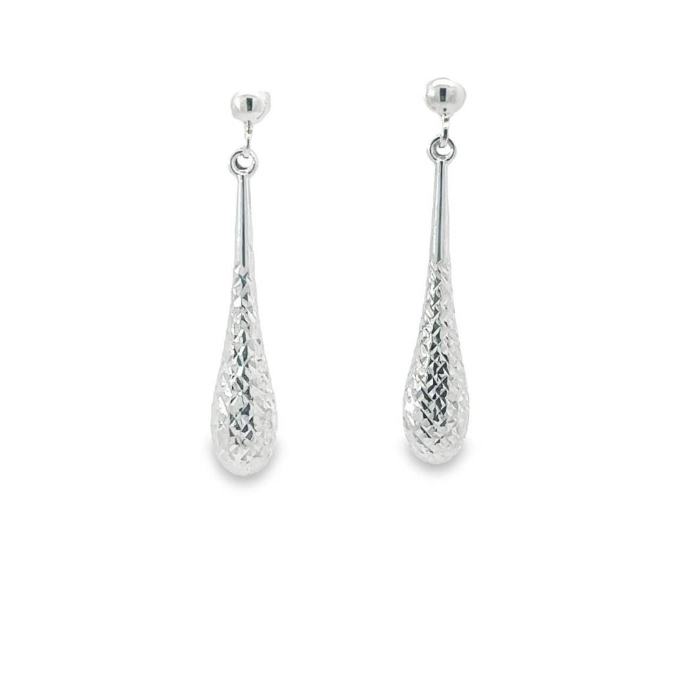 9ct white gold elongated teardrop diamond cut drop earrings.