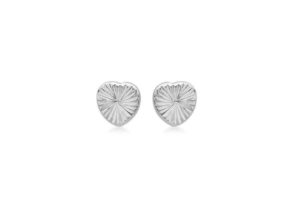 9ct White Gold Diamond Cut Heart Stud Earrings
