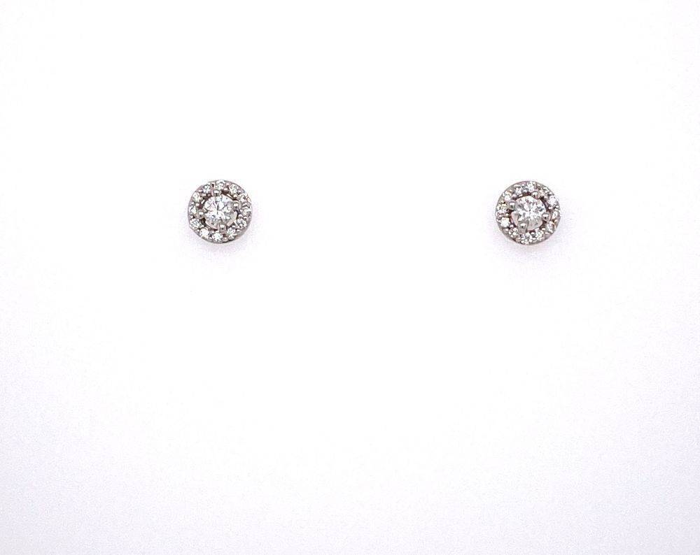 9ct white gold round brilliant cut diamond halo stud earrings. 0.20ct total diamond weight.