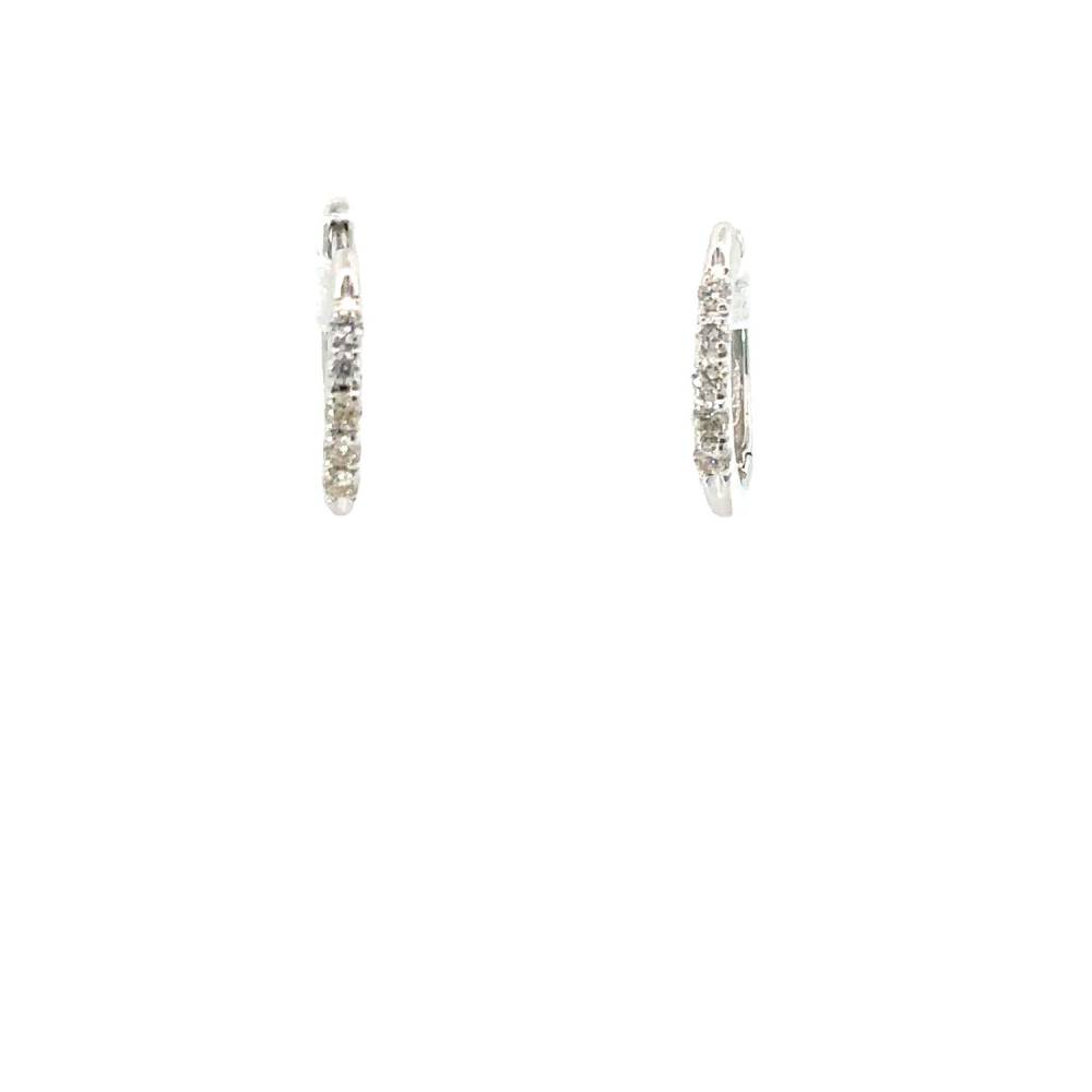 9ct white gold 10mm hinged hoop earrings grain set with round brilliant cut diamonds. 0.15ct total diamond weight.