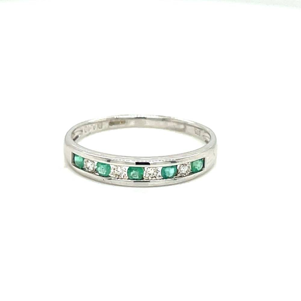 9ct white gold emerald and diamond channel set half eternity style ring.