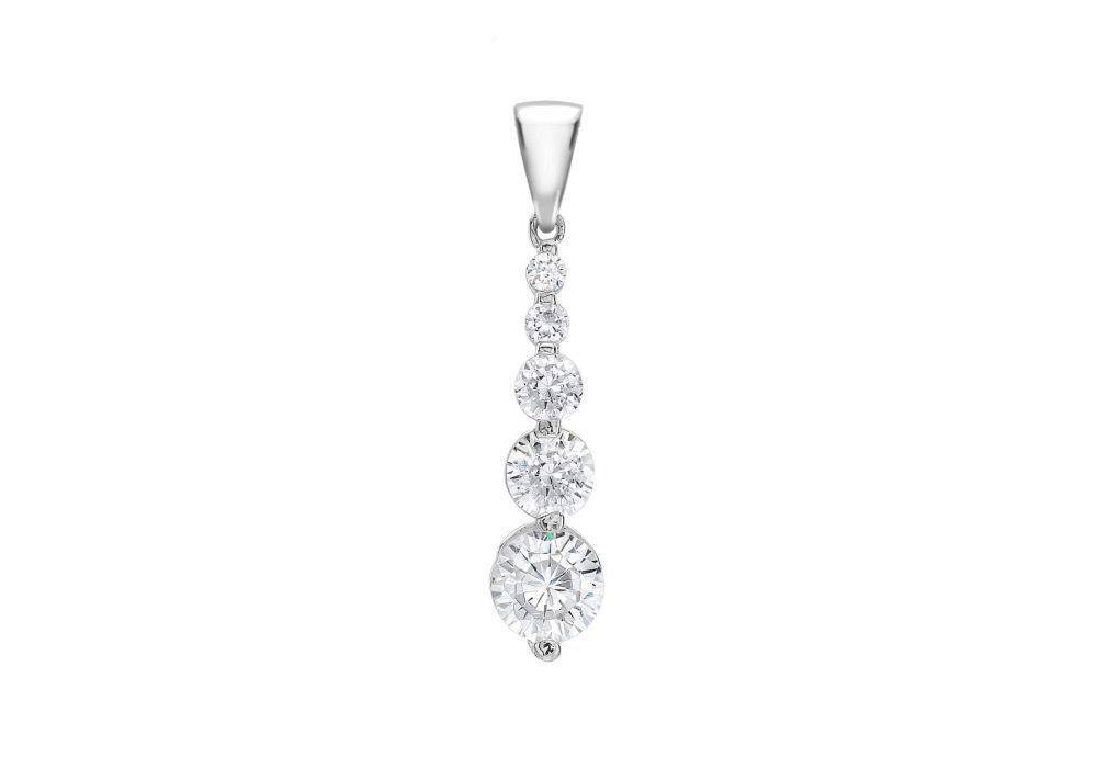 9ct white gold five stone cubic zirconia graduated pendant. DOES NOT INCLUDE CHAIN. If you would like this pendant on a chain please search for white gold chains.