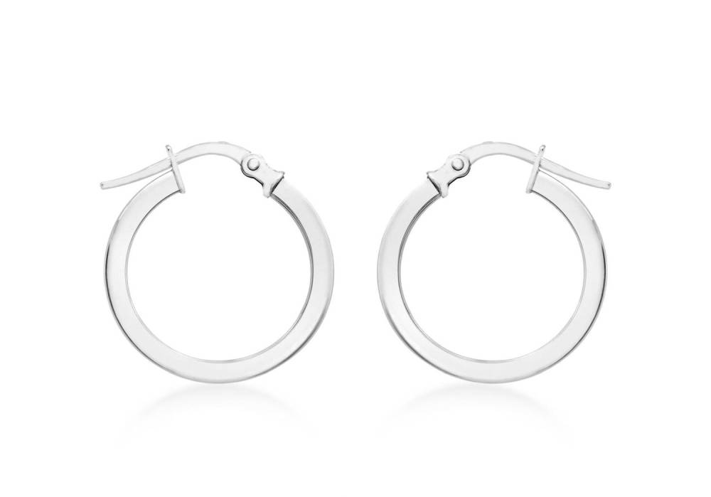 8. 9ct White Gold Flat Edge Hoop Earrings