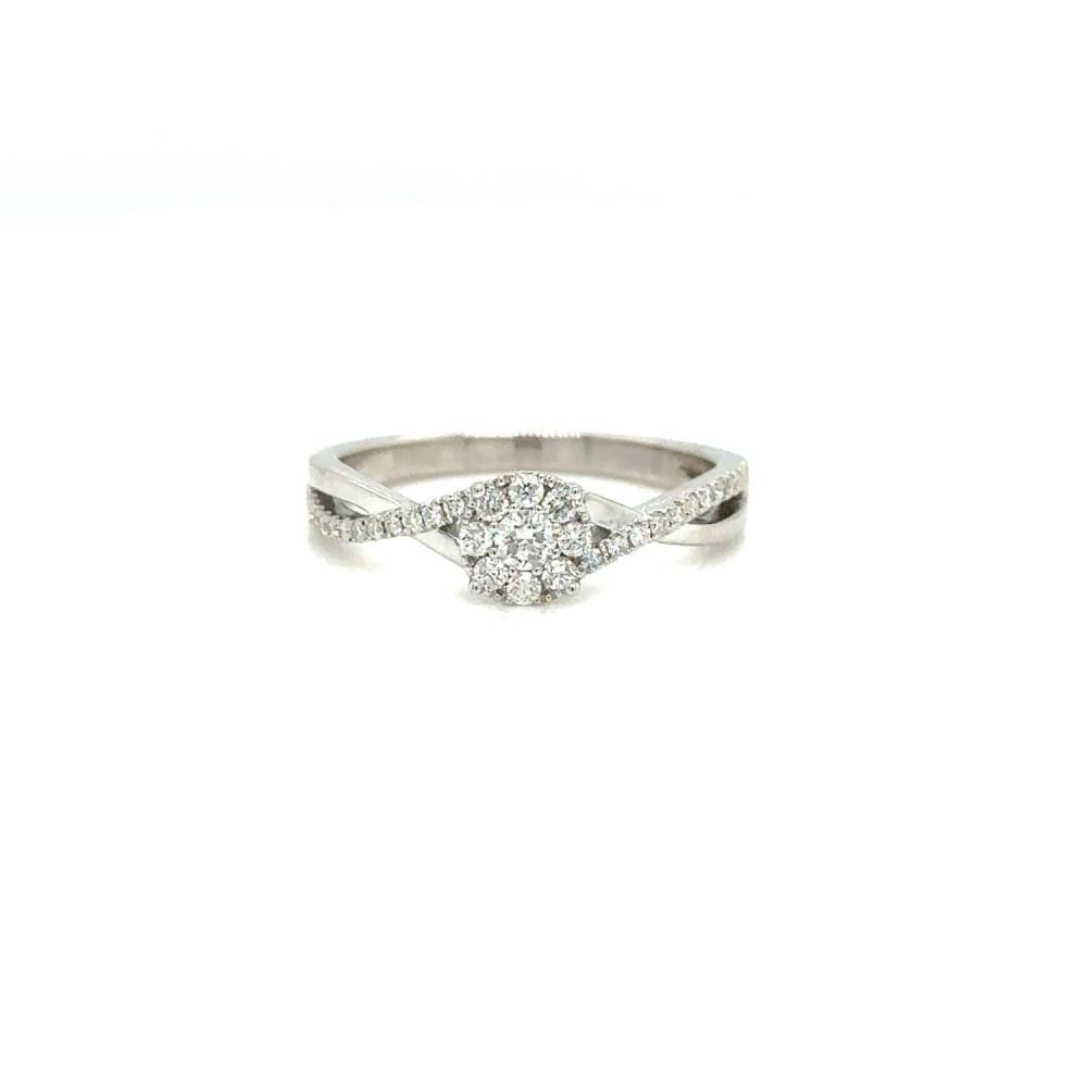 9ct white gold invisible set round brilliant cut diamond cluster ring to give the illusion of one diamond with two row open twisted diamond set shoulders. 0.35ct total diamond weight.